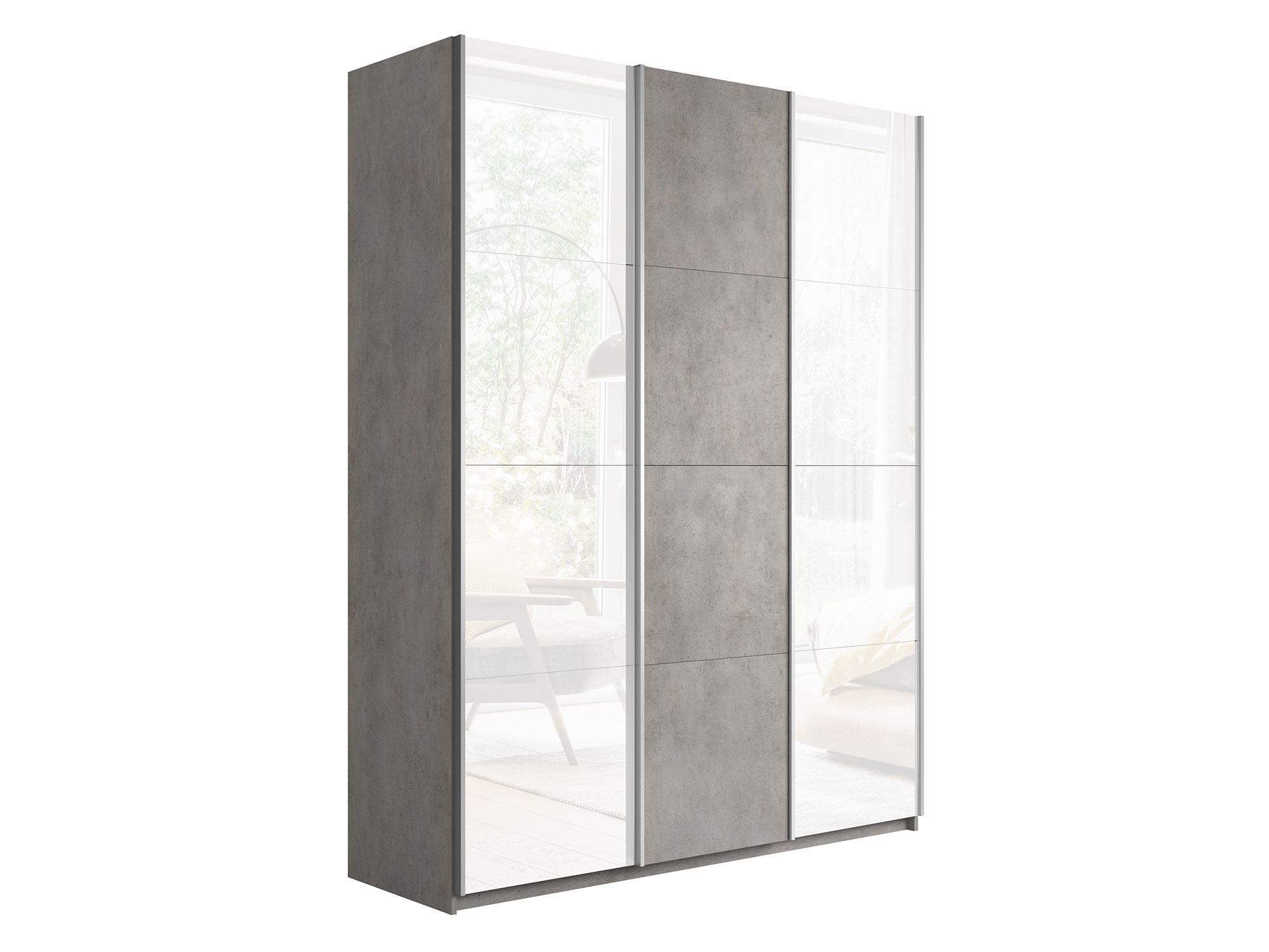 - Шкаф-купе Прайм 3-х дверный 1800 два Стекла Белые/ДСП Бетон