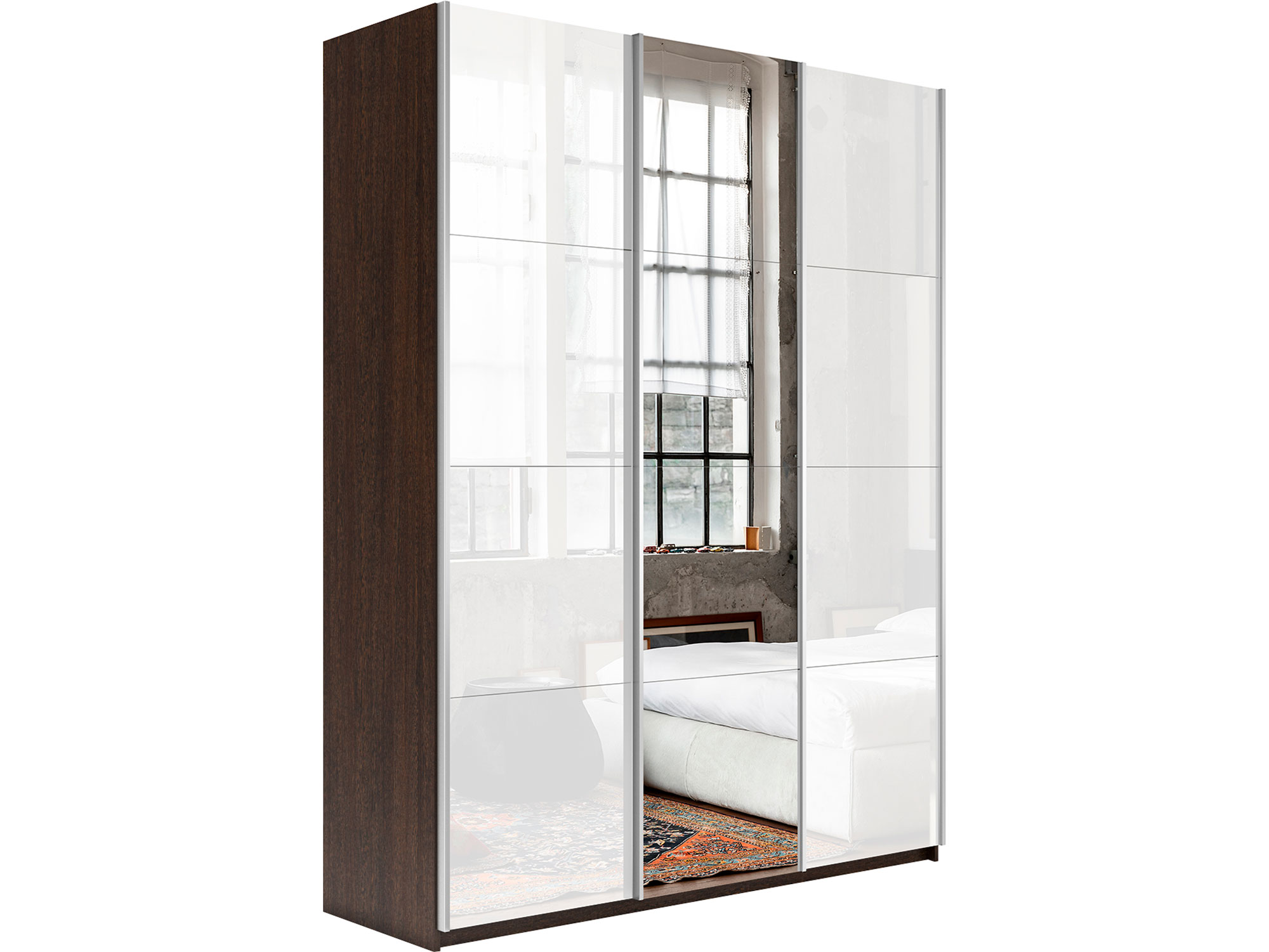 - Шкаф-купе Прайм 3-х дверный 1800 два Стекла Белые/Зеркало Венге