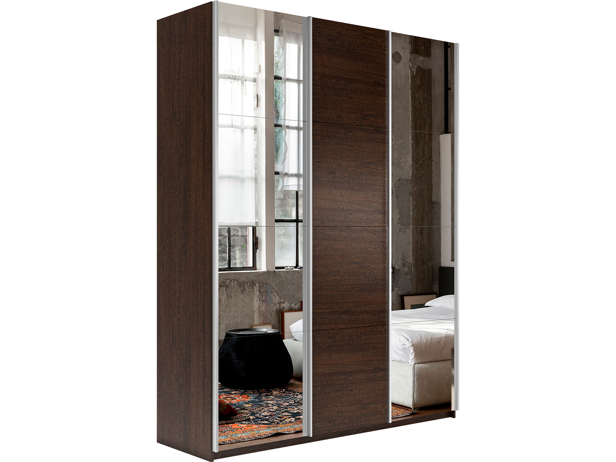 - Шкаф-купе Прайм 3-х дверный 1800 два Зеркала/ДСП Венге