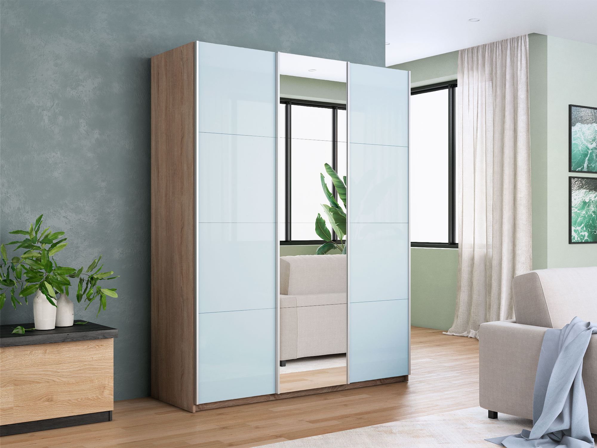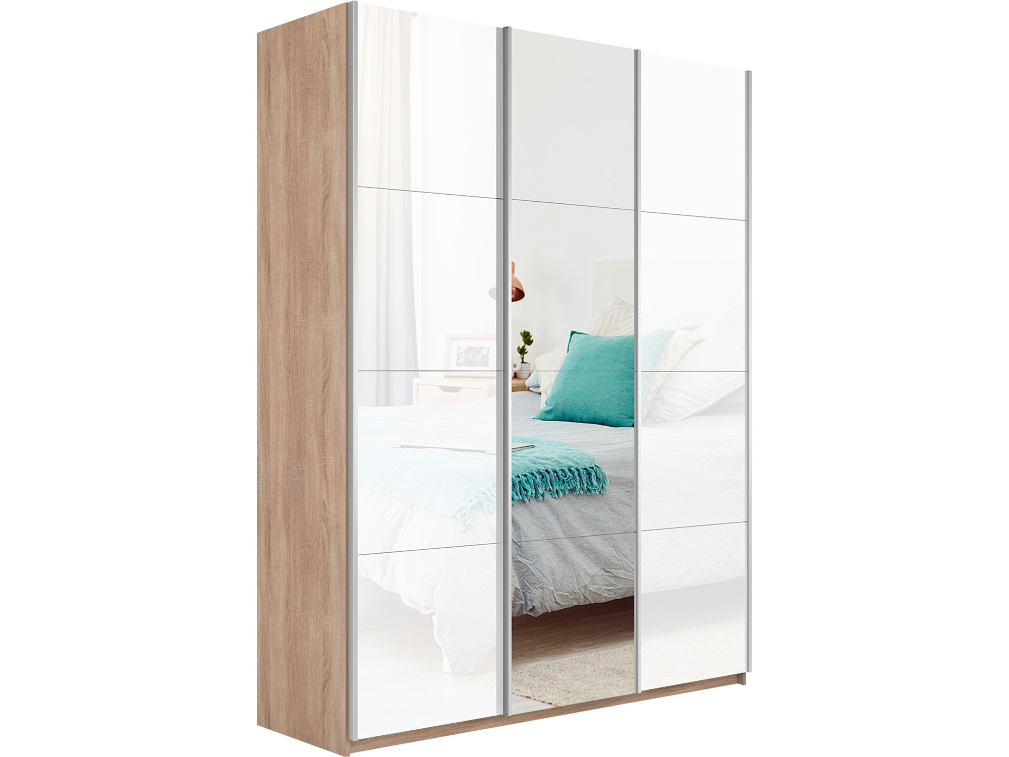 - Шкаф-купе Прайм 3-х дверный 2100 два Стекла Белые/Зеркало Сонома