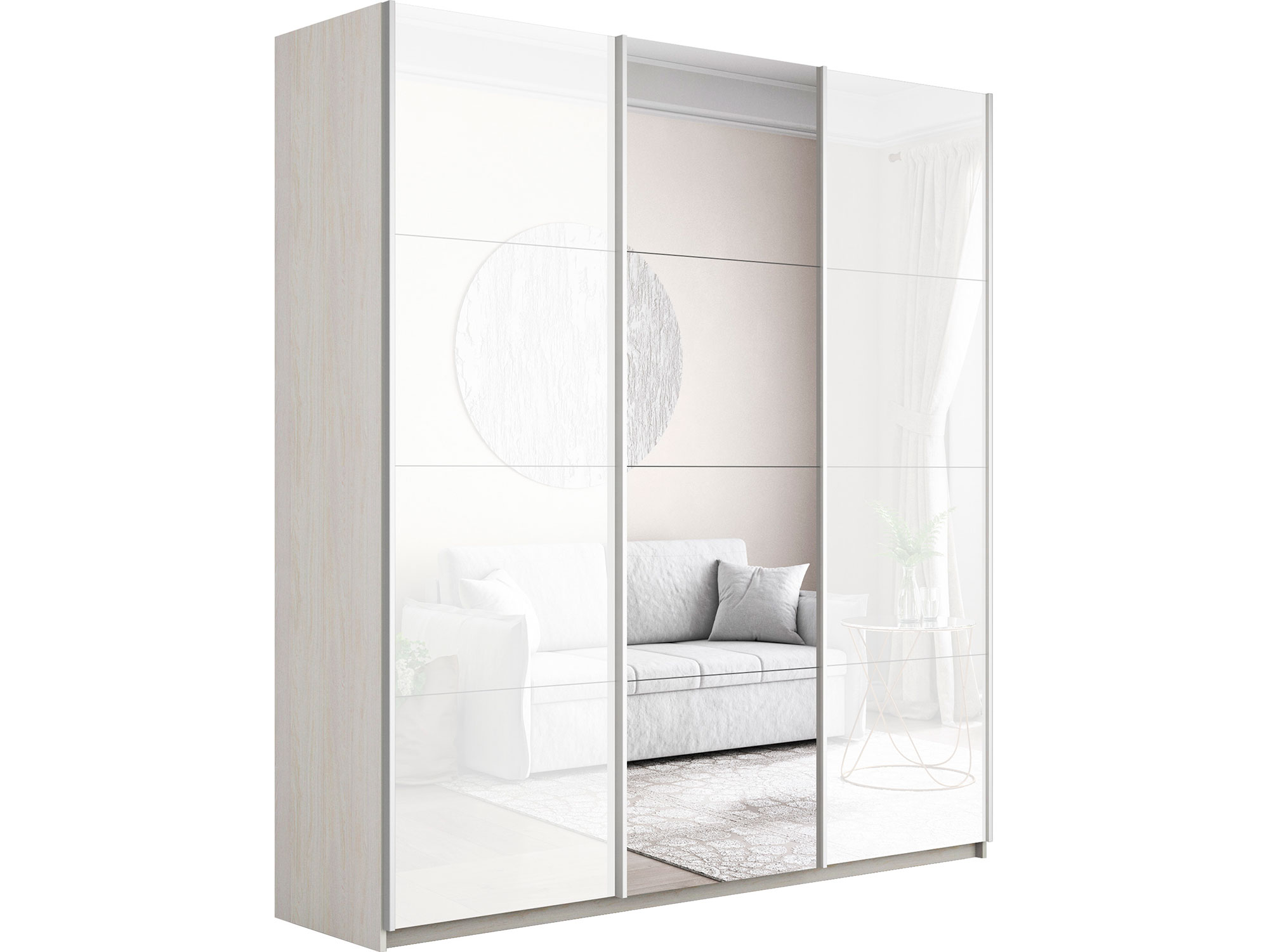 Шкаф-купе Прайм 3-х дверный 2100 два Стекла Белые/Зеркало Ясень Анкор Светлый