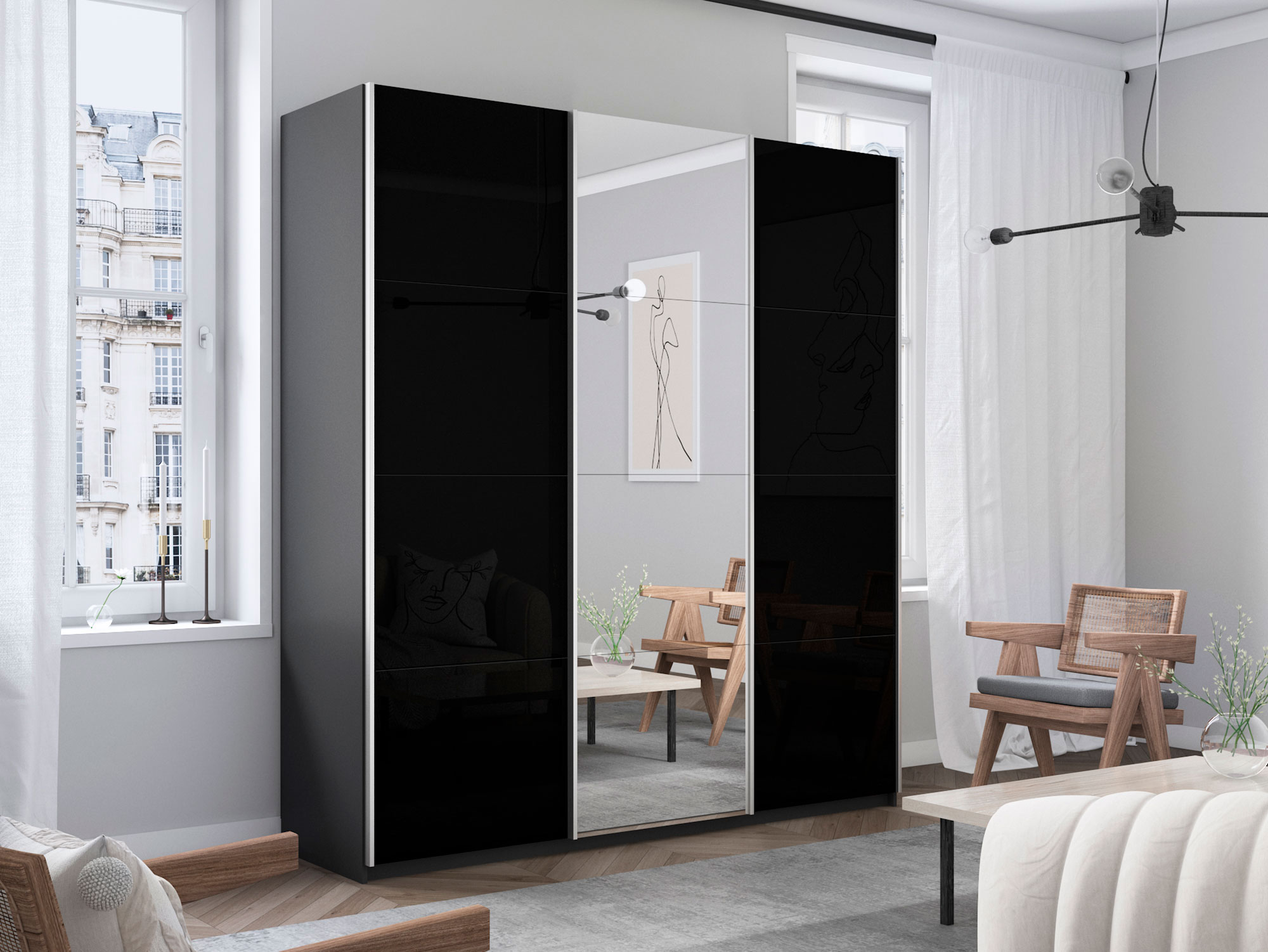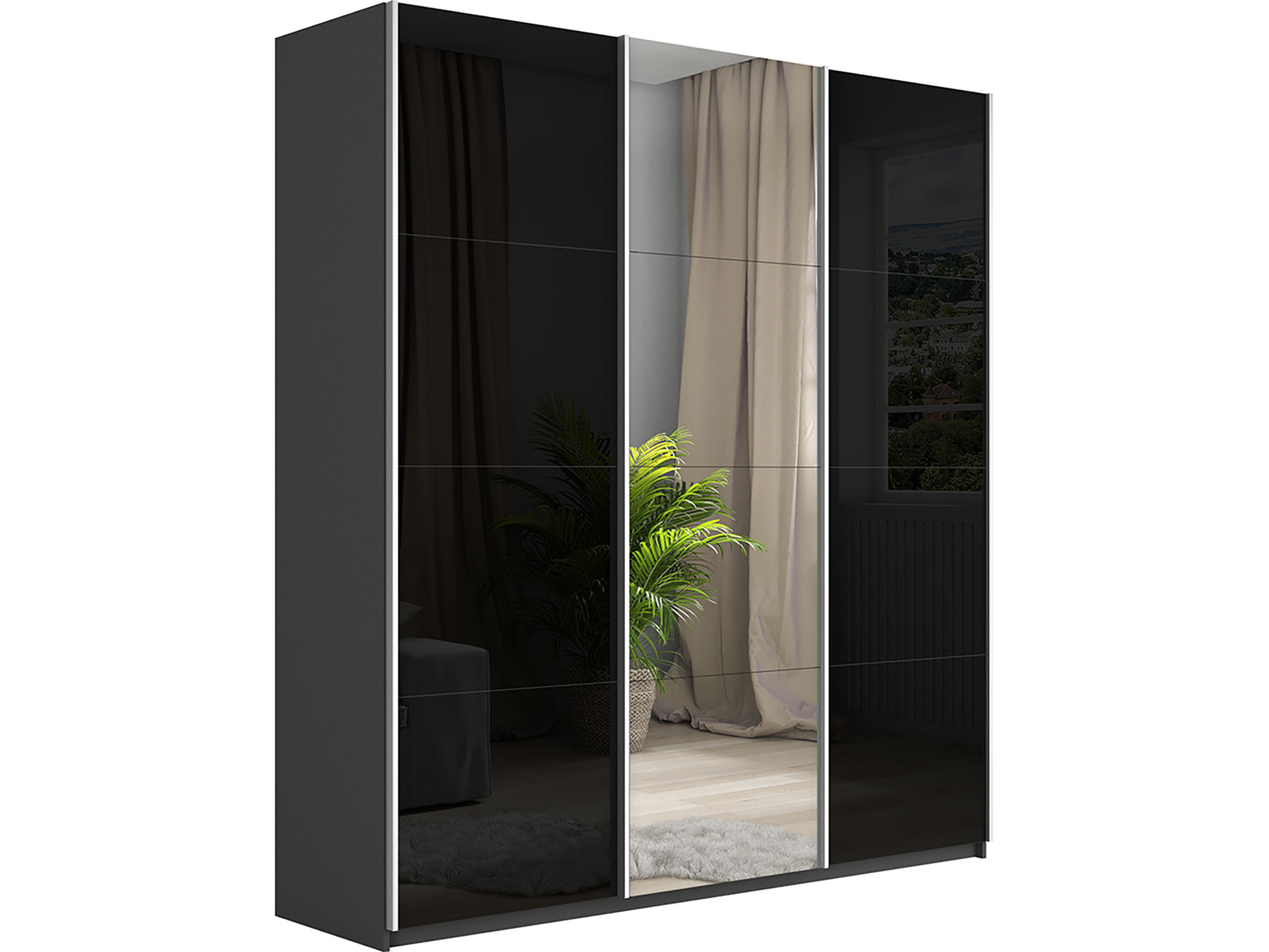 - Шкаф-купе Прайм 3-х дверный 2100 два Стекла Черные/Зеркало Серый Диамант