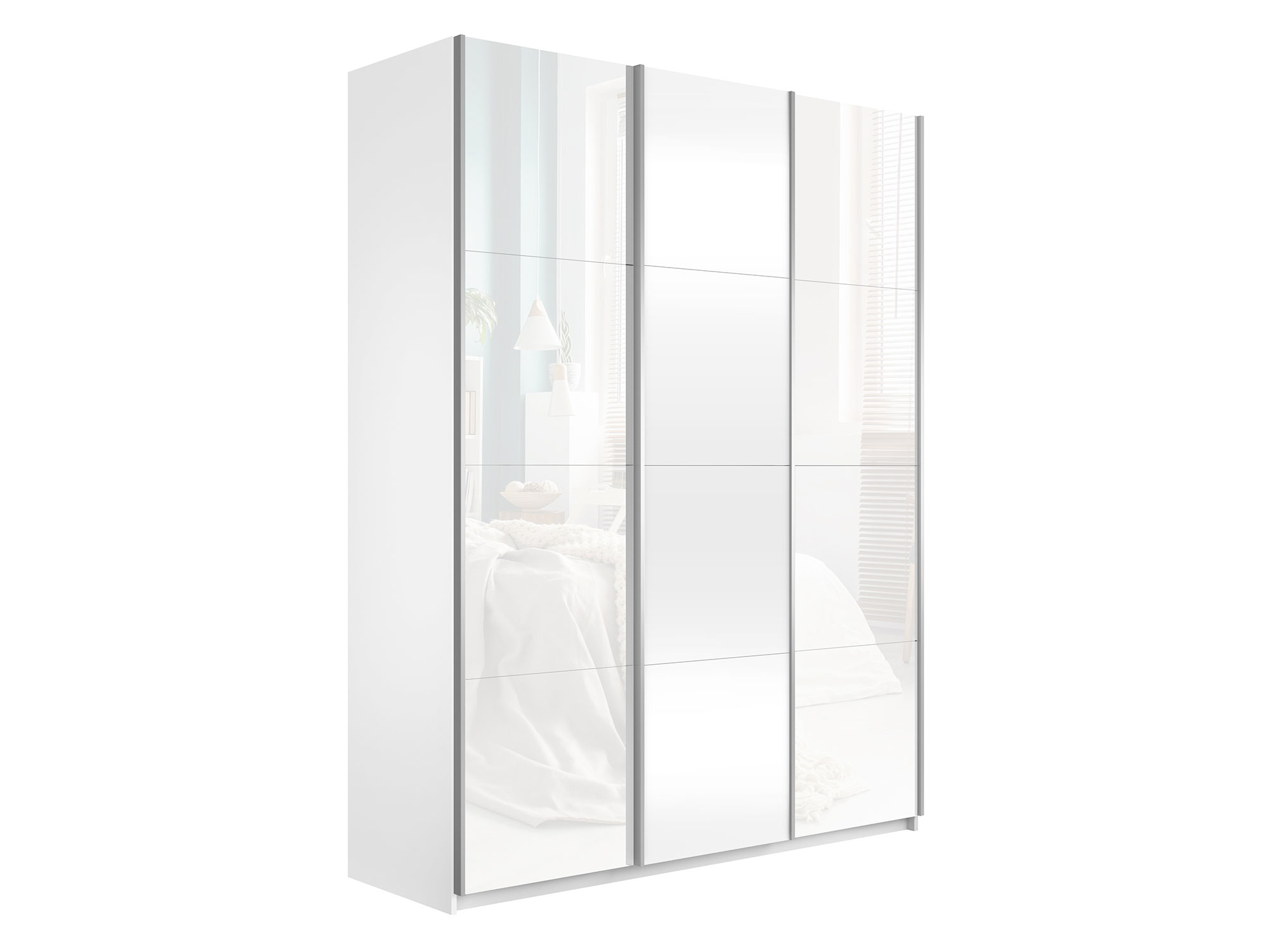 - Шкаф-купе Прайм Широкий 3-х дверный два белых стекла/ДСП Белый Снег