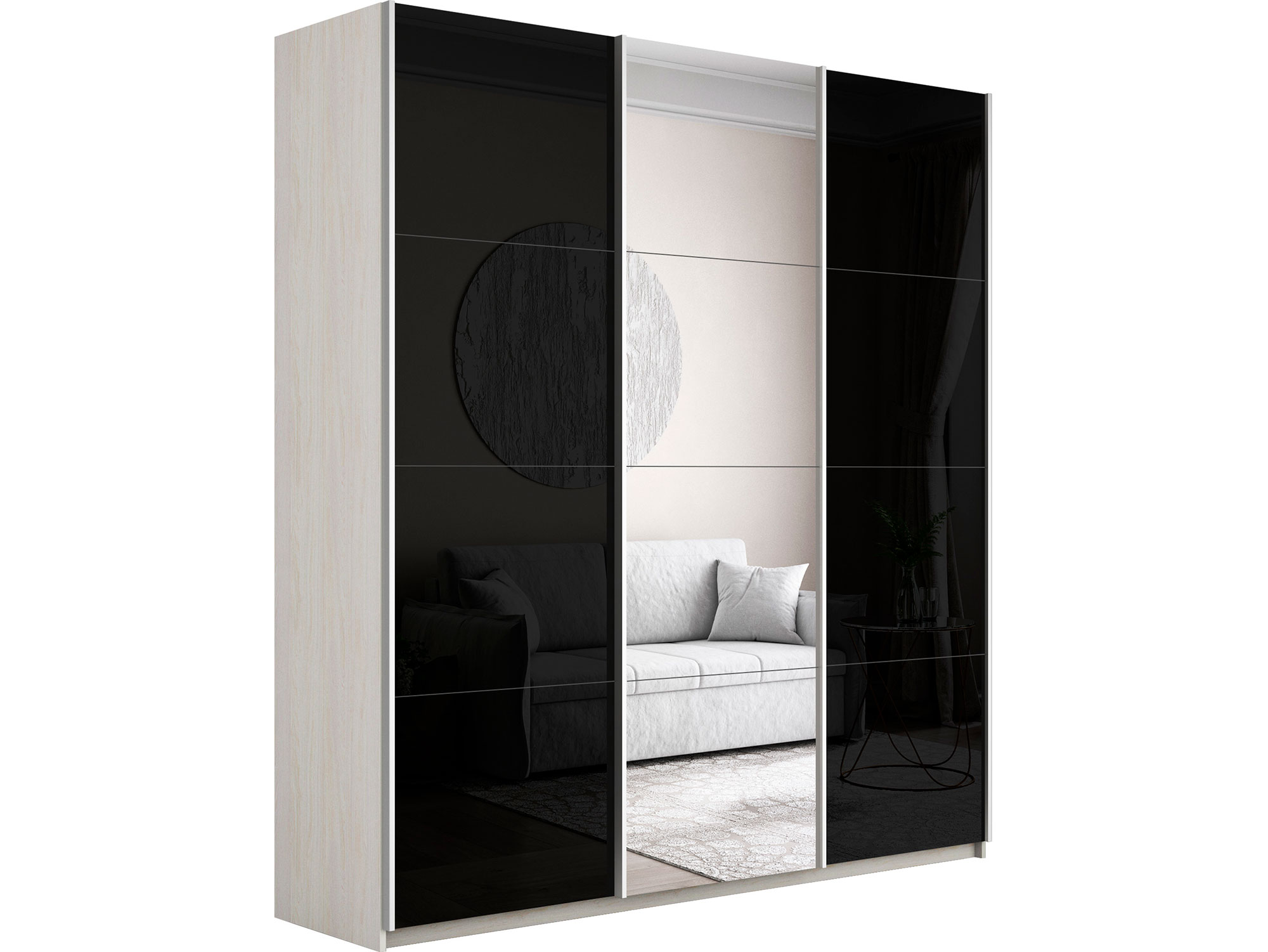 Шкаф-купе Прайм Широкий 3-х дверный два черных стекла/зеркало Ясень Анкор Светлый
