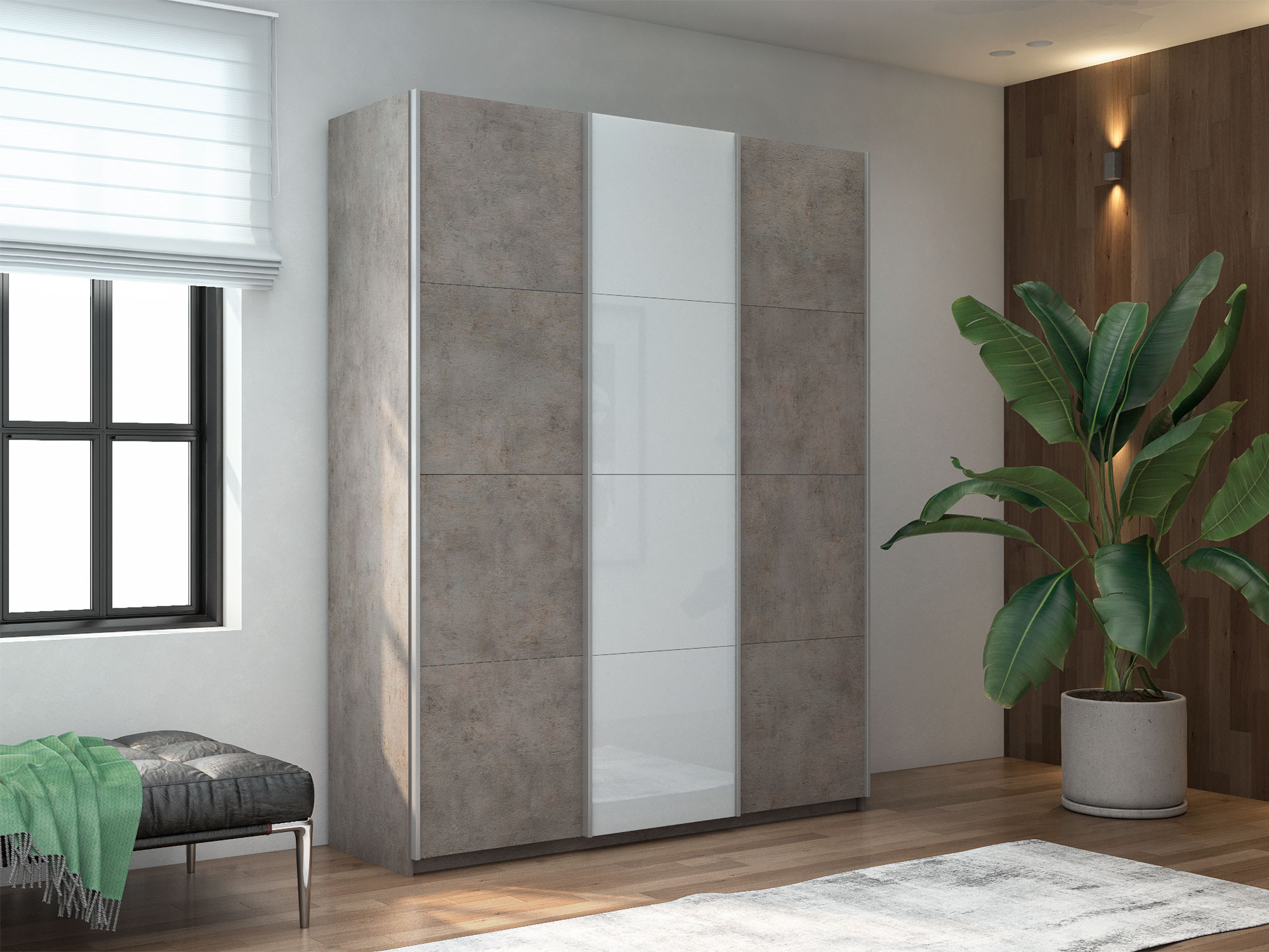 Шкаф-купе Прайм Широкий 3-х дверный два ДСП/Стекло Белое Бетон