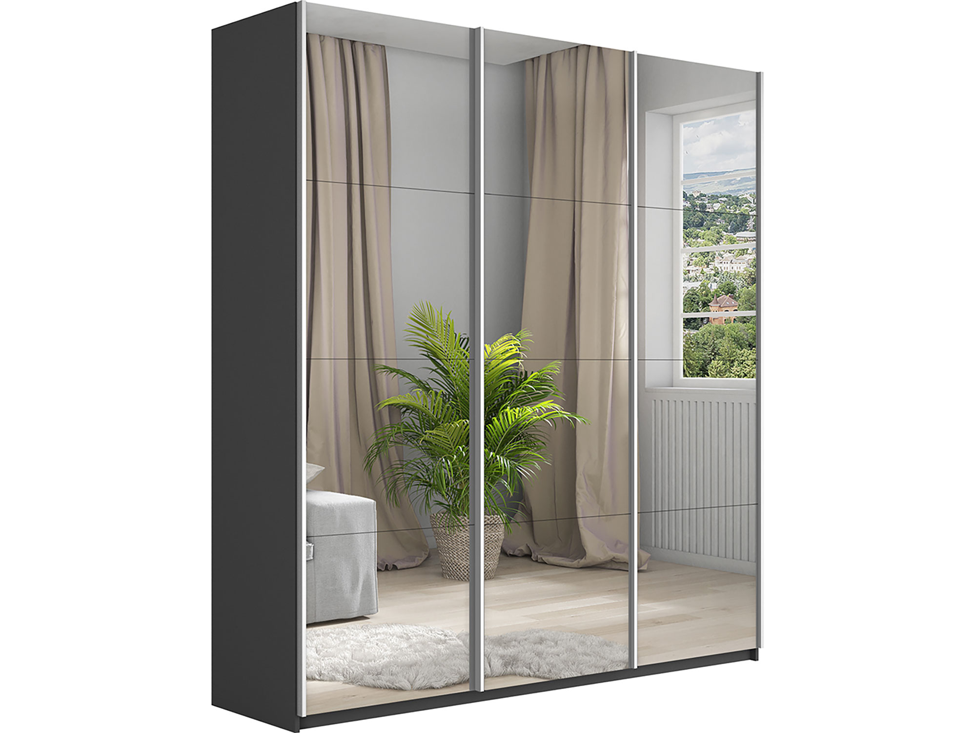 - Шкаф-купе Прайм Широкий 3-х дверный три зеркала Серый Диамант
