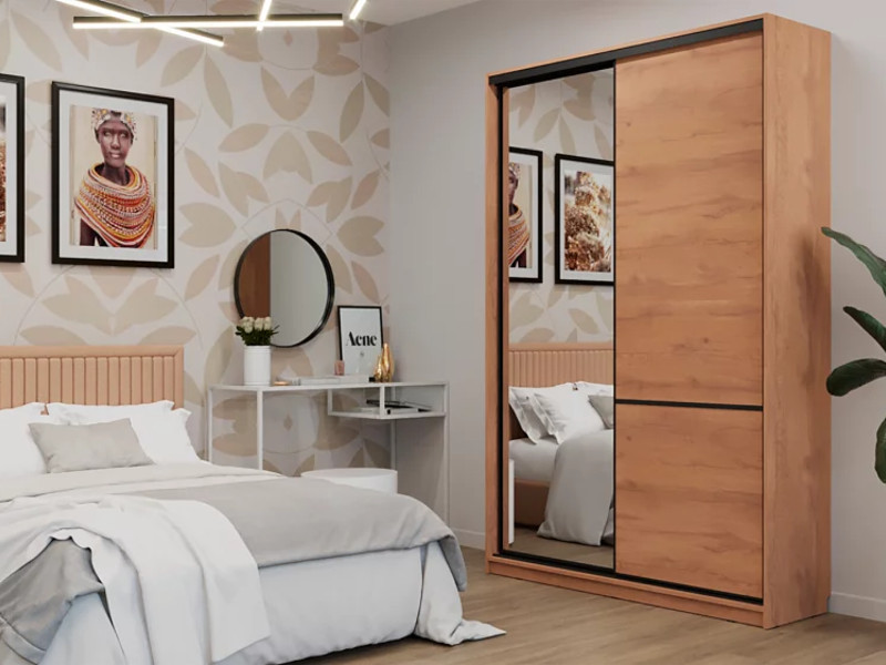 - Шкаф-купе СТМ Line 150х45 с зеркалом Дуб табачный