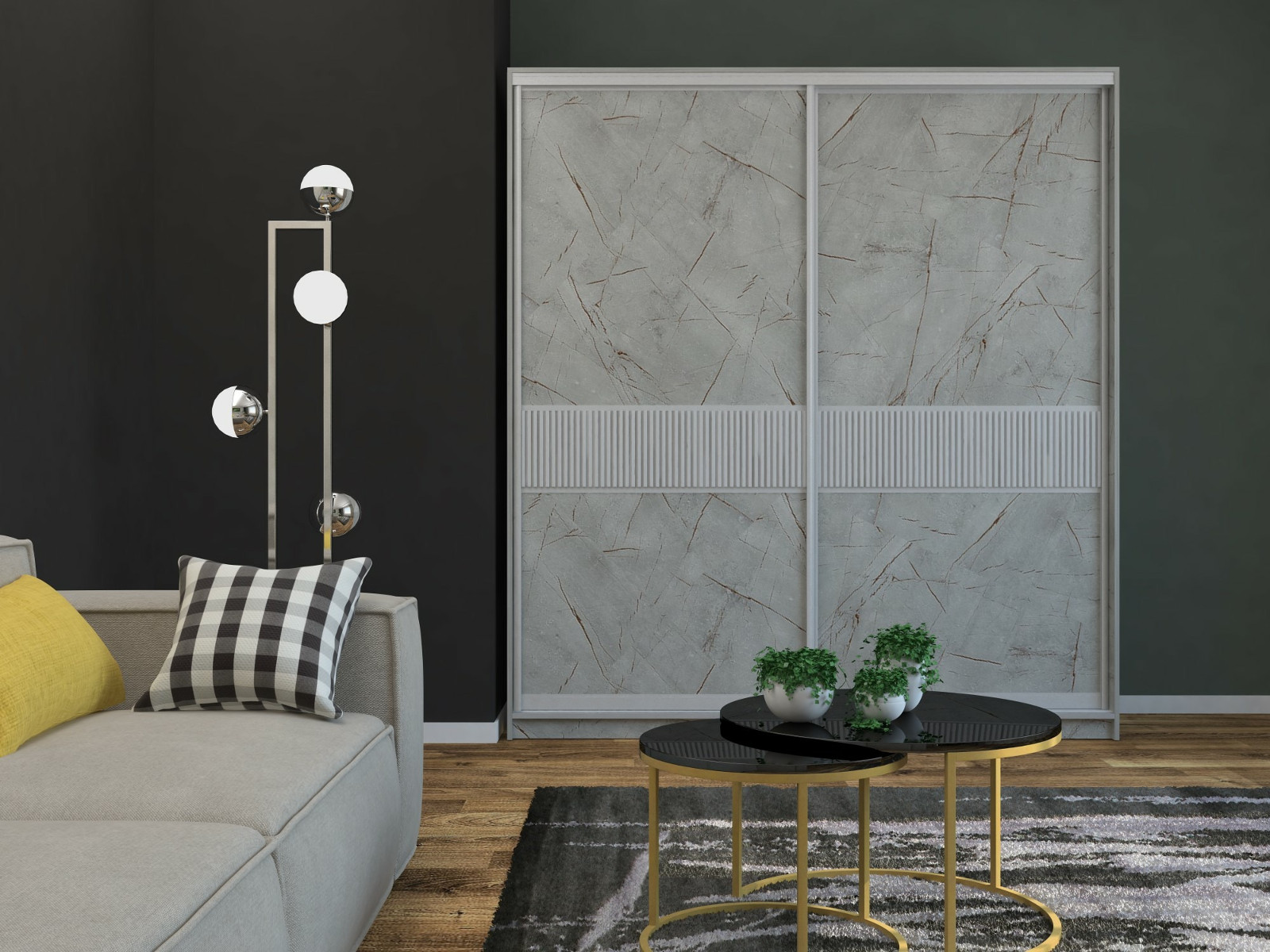 - Шкаф-купе Светлана узкая рельефная вставка МДФ Каспий светлый