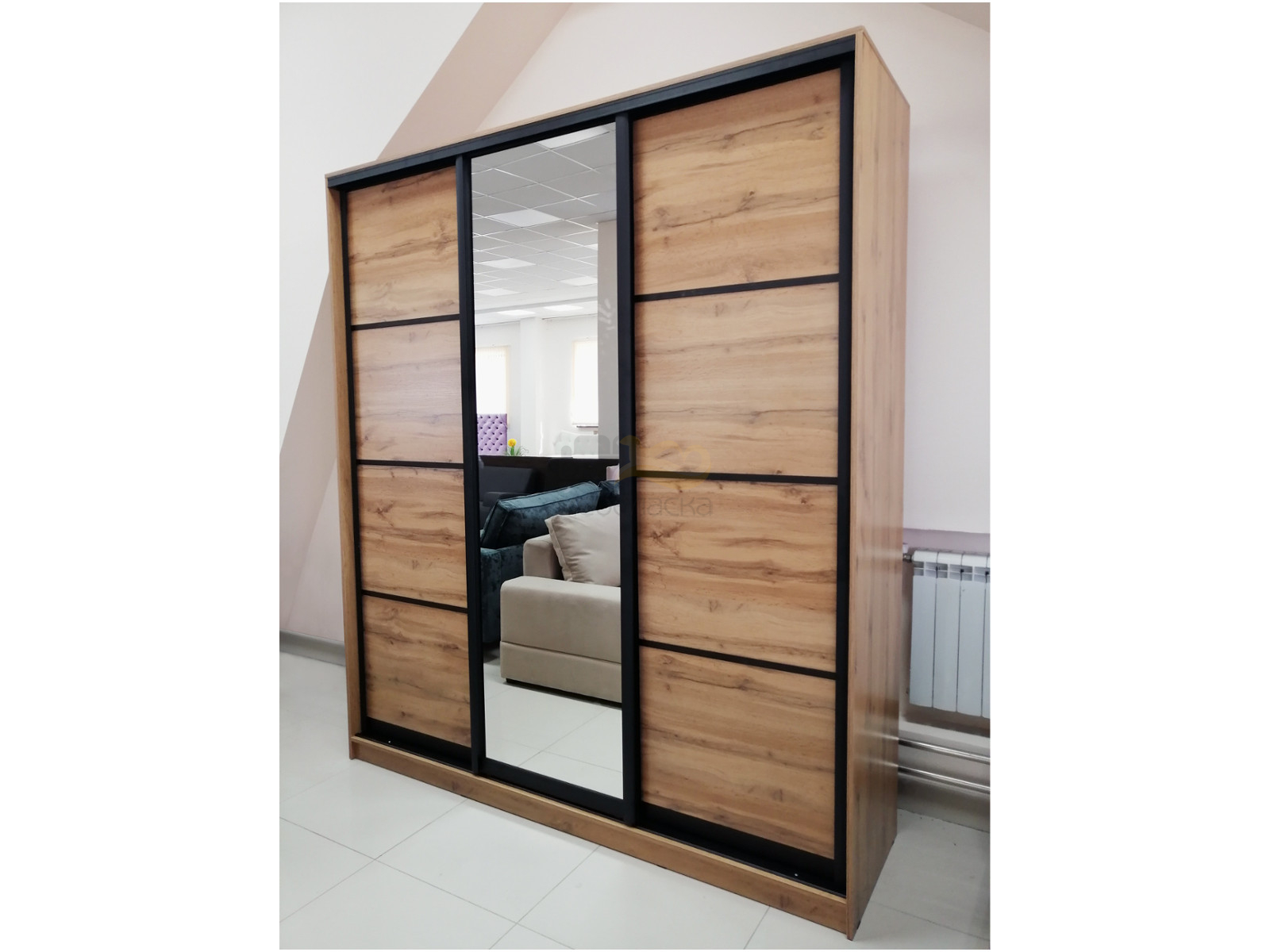 - Шкаф купе трехдверный 2 глухие 1 зеркальная Дуб вотан 2700 мм