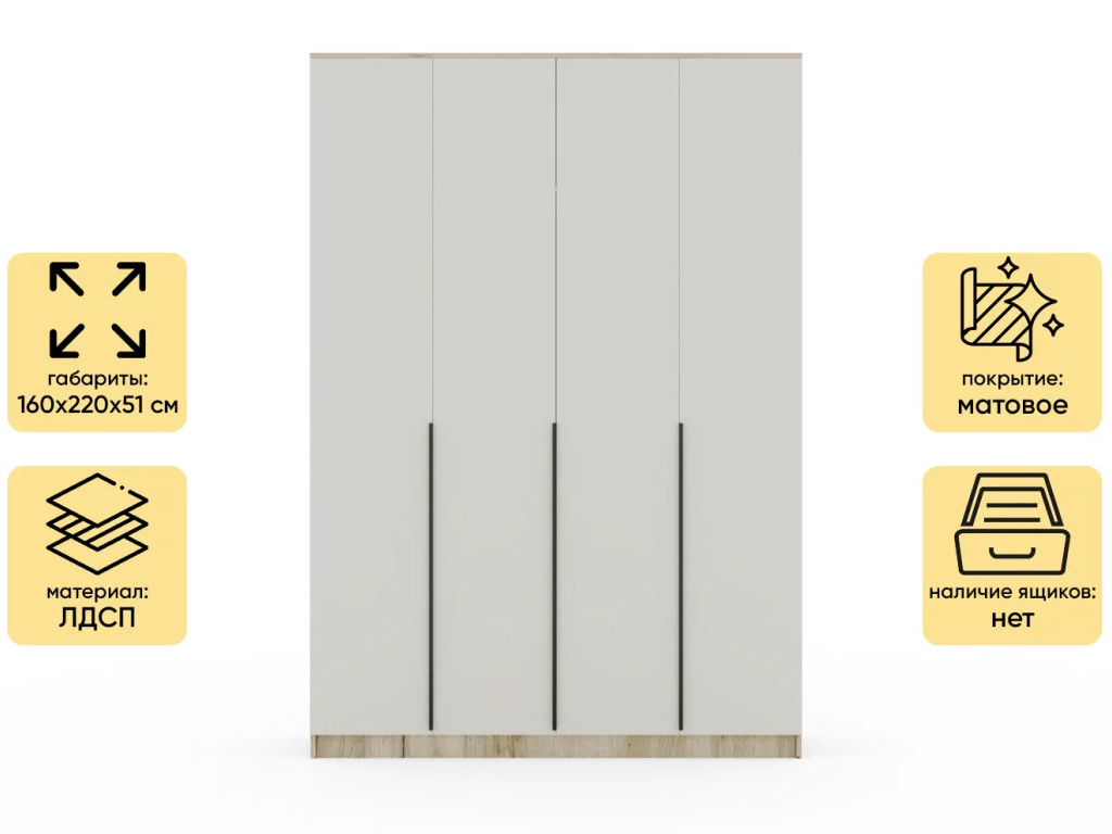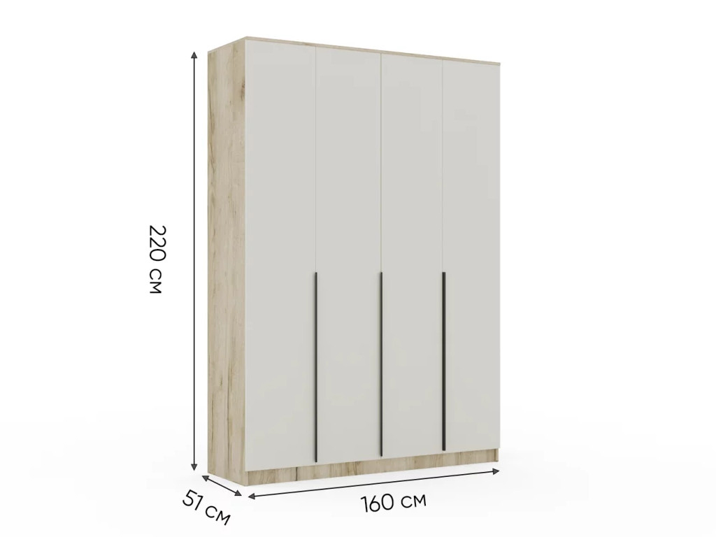 - Шкаф Монблан New распашной 1600 4-х дверный Дуб крафт серый-Кашемир