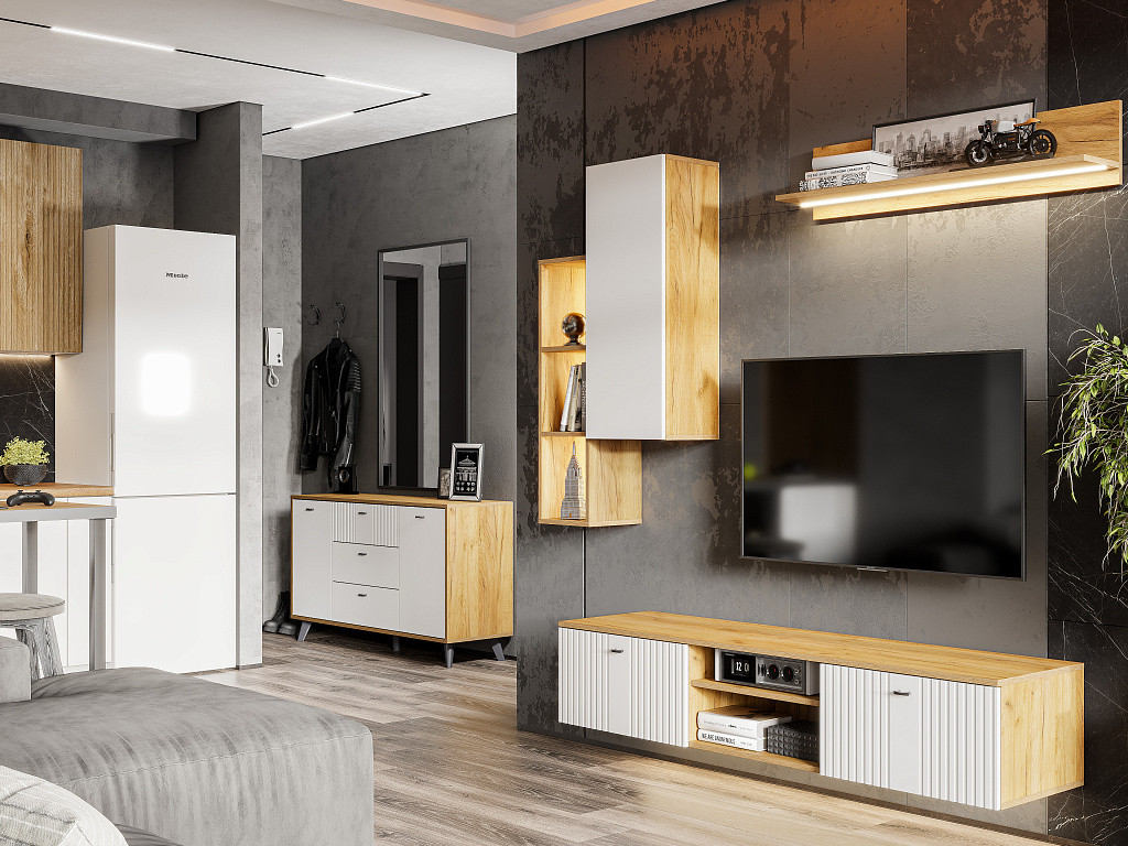 Шкаф навесной Милан Дуб Золотой/Белый Матовый