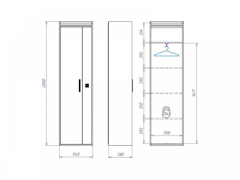 Размер Ш*Г*В: 540*384*2000 мм