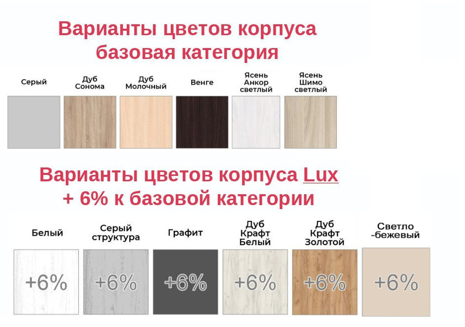Дополнительно шкафы могут комплектоваться антресолями высотой 400 мм, консолями и зеркалами.