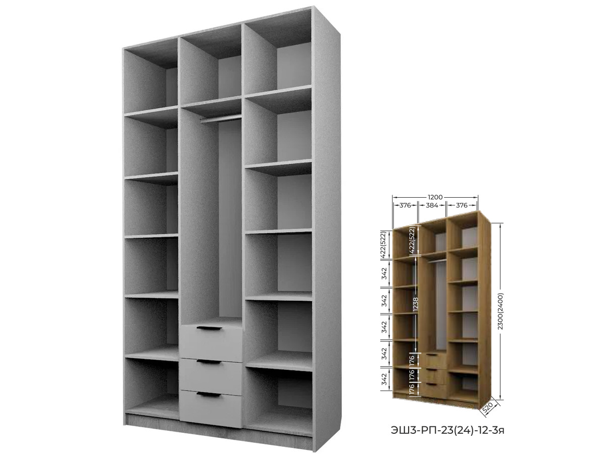 Комплект: ЭШ3-РП-23-12-3я, Шкаф с 3 ящиками + ЗС-23-3я,Зеркало для шкафов ЭШ 2300 мм