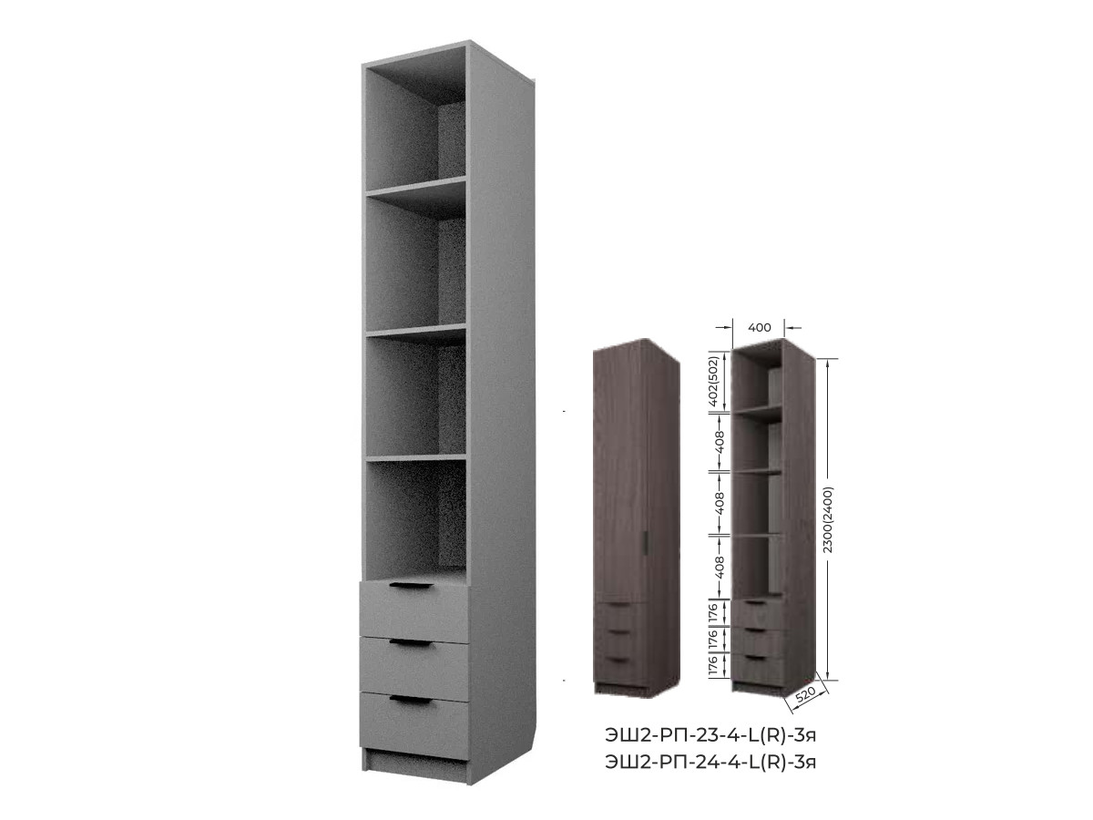 Комплект: ЭШ2-РП-24-4-R-3я,Шкаф с 3 ящиками + ЗС-24-3я,Зеркало для шкафов ЭШ 2400 мм