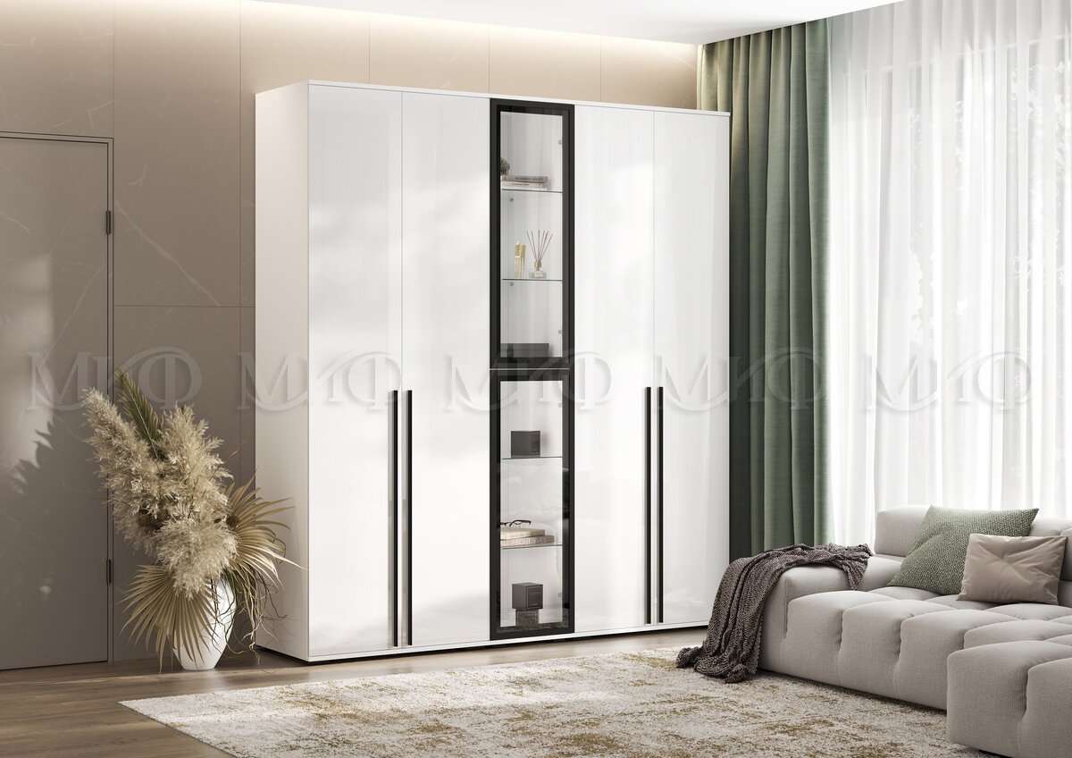 - Шкаф с витриной Норд Белый глянец