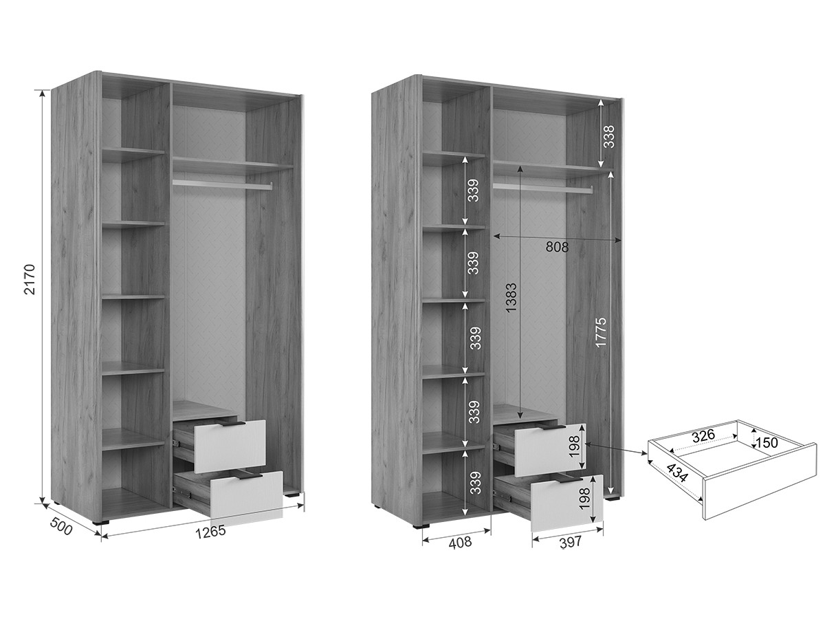 - Ширина 1264 мм