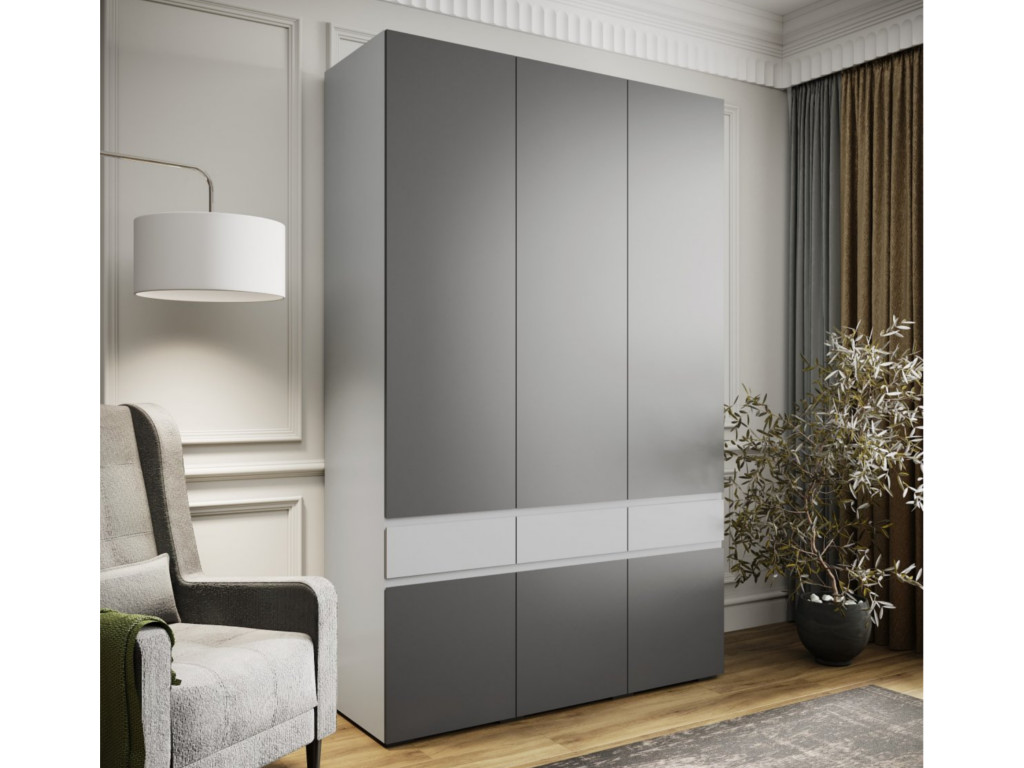 - Шкаф трехдверный Мерида серый камень/графит серый