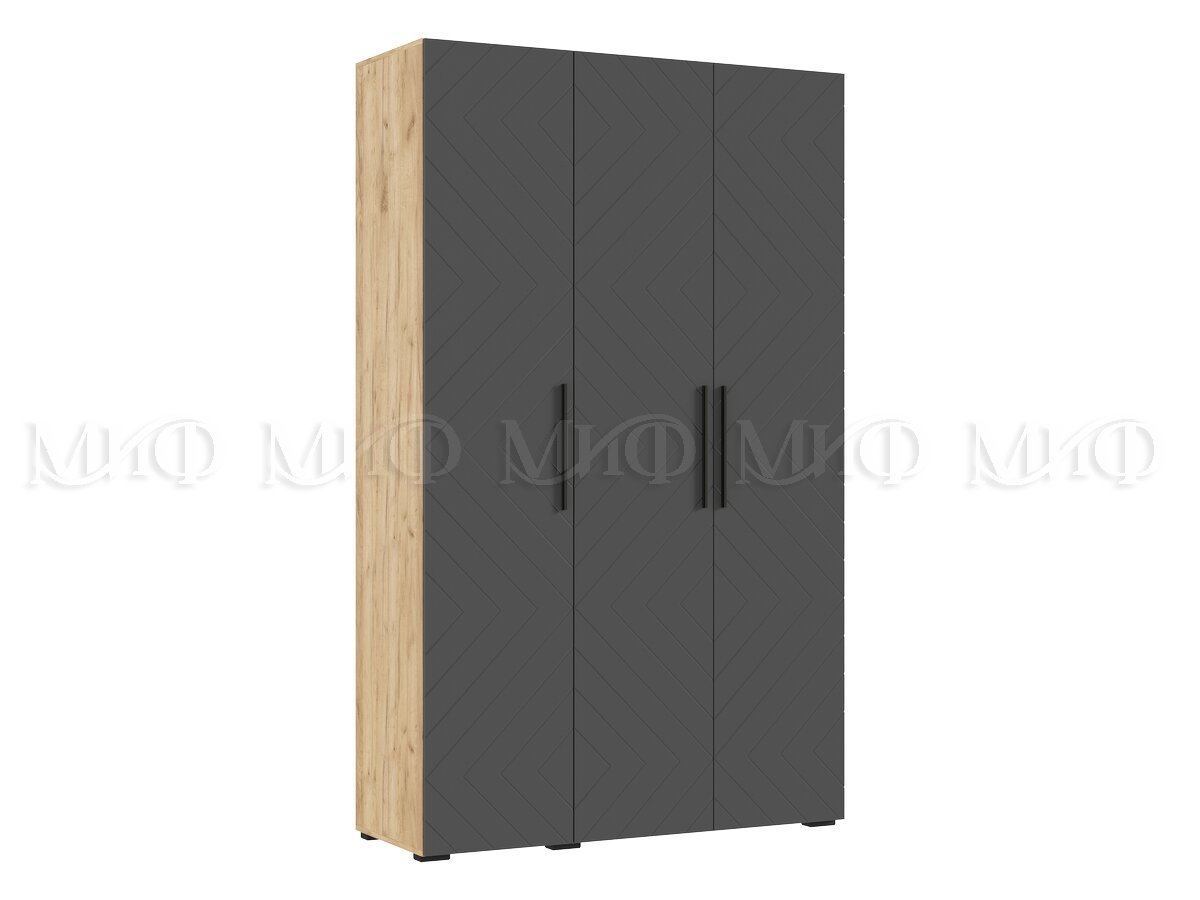Шкаф трехстворчатый (1350) Флэш Браш Графит, Дуб Крафт