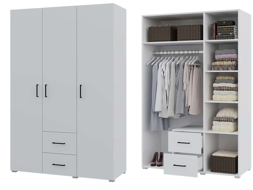 Шкаф трехстворчатый 2 ящика Victor Белый