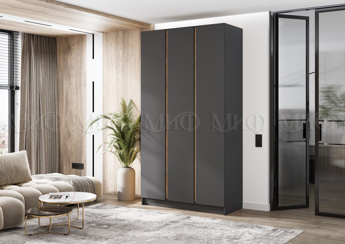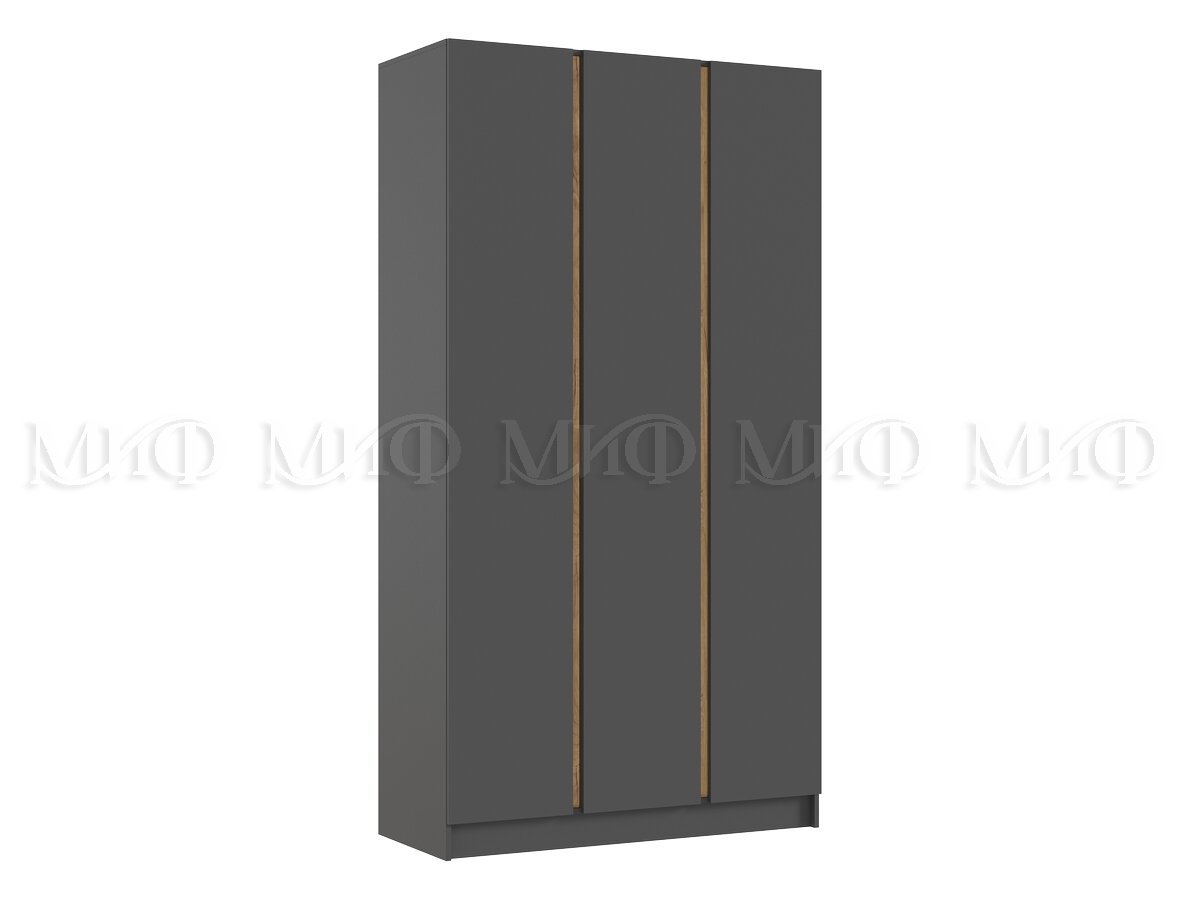 - Шкаф трехстворчатый Келвин (1200) Графит-вставка дуб крафт