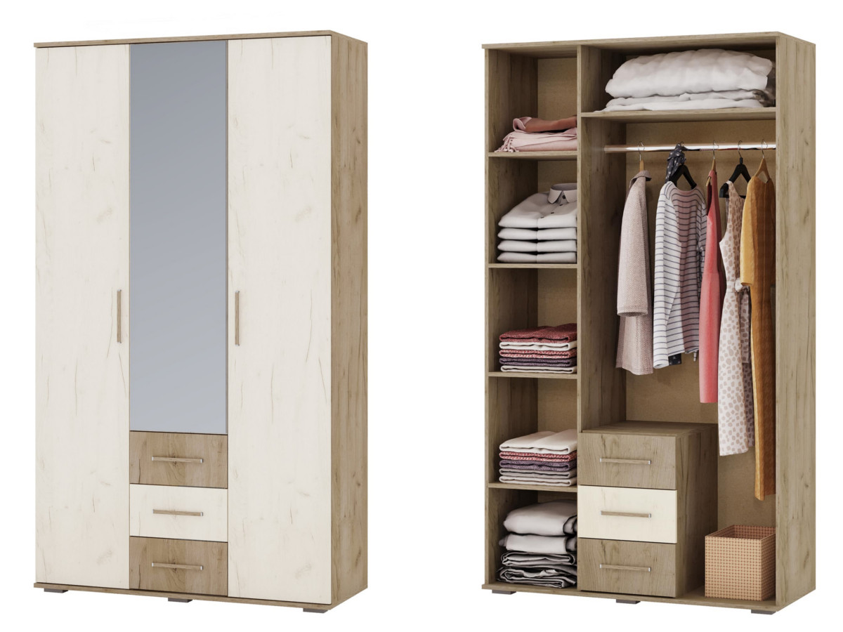 Шкаф трехстворчатый Парма дуб крафт серый-дуб крафт белый