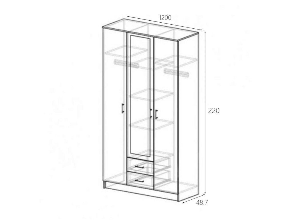 Размер: 1200(Ш) Х 2200(В) Х 487(Г) мм