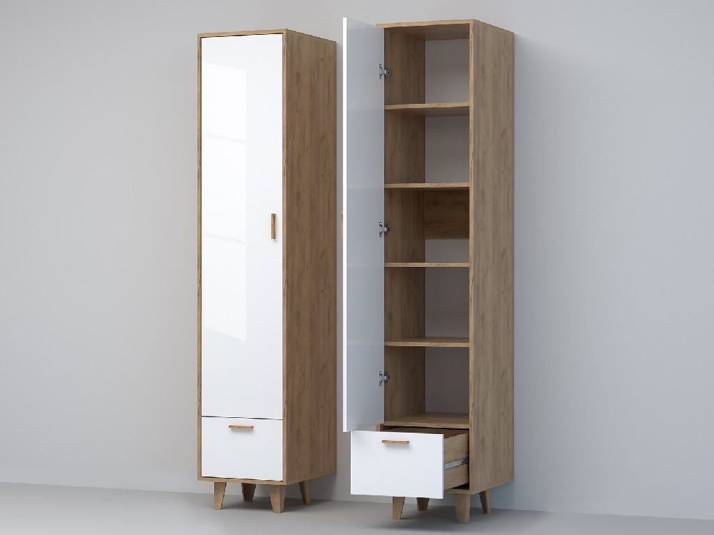 - Пенал Эго П-1 дуб крафт золотой/белый глянец на ножках