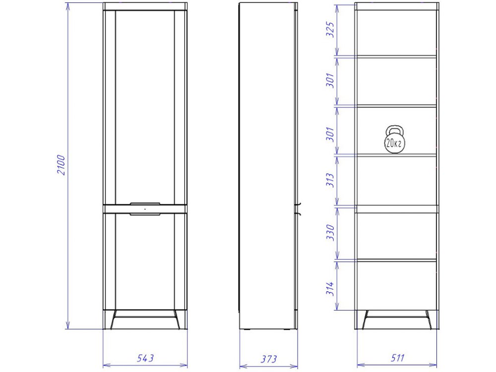 Размер ШхГхВ: 543*373*2100 мм