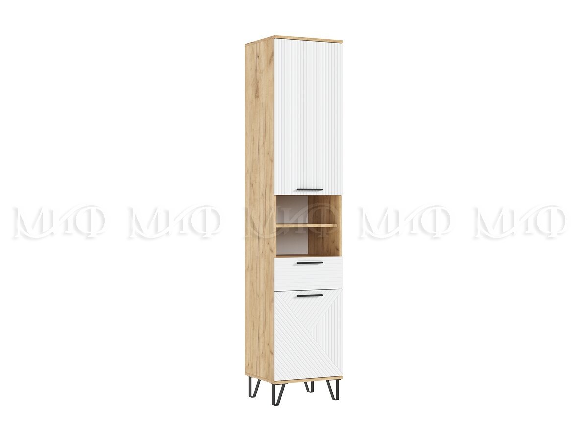 - Пенал открытый в прихожую Флэш Браш Вайт, Дуб Крафт