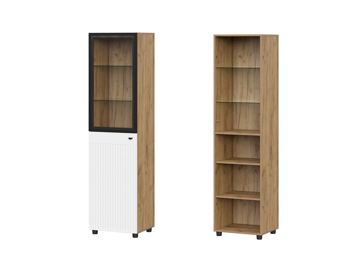 - Пенал со стеклом Милан Дуб Золотой/Белый матовый