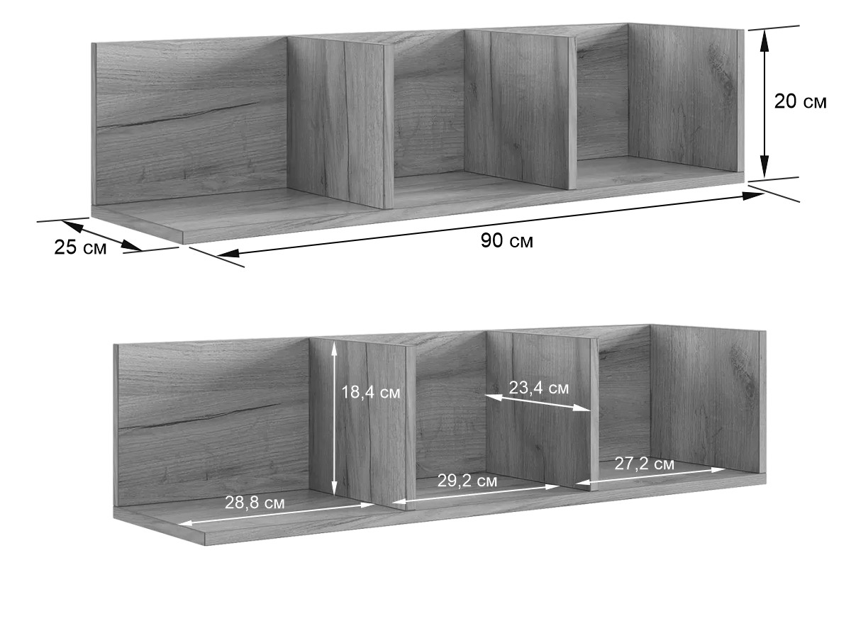 - Полка навесная 2 Рич дуб крафт золотой