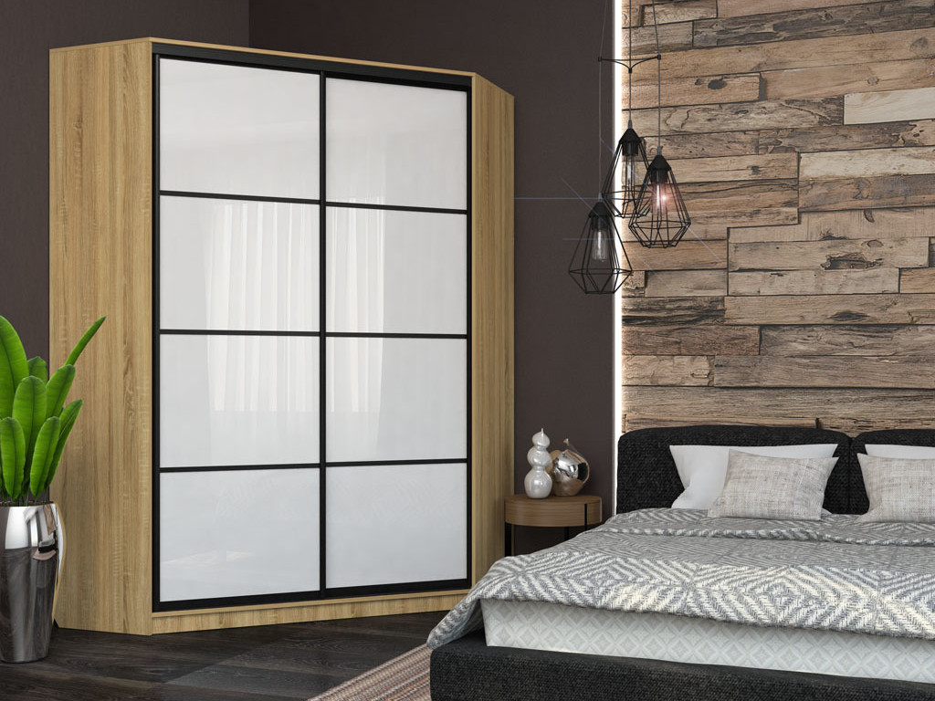 - Угловой шкаф-купе Лофт фасад МДФ белый глянец 3г