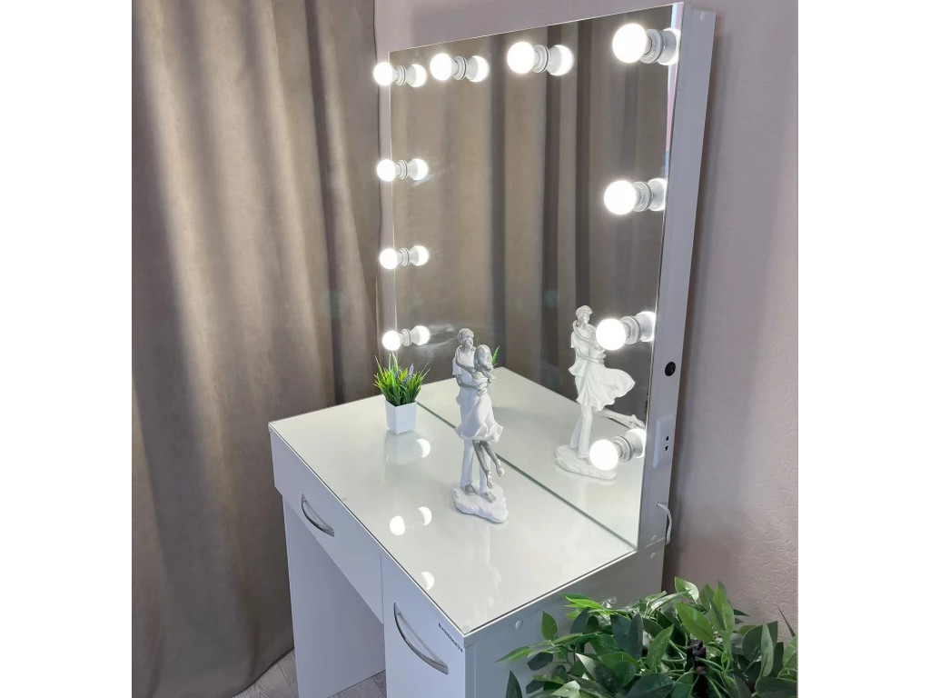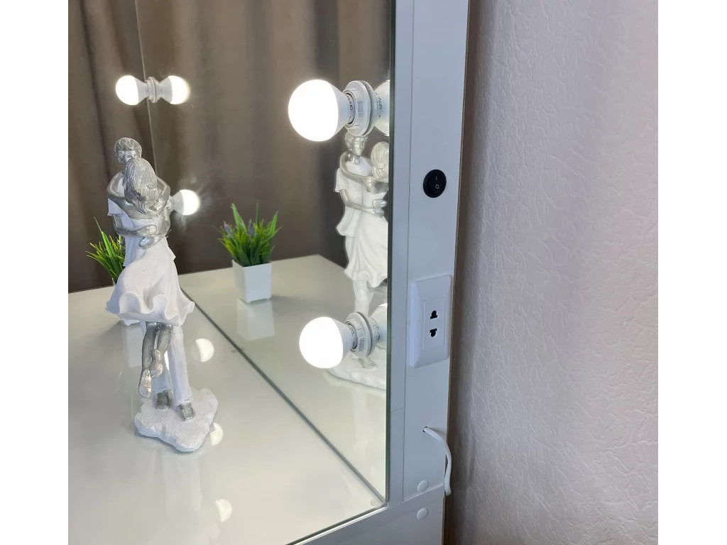 - Встроенные выключатель и розетка на торце зеркала справа.