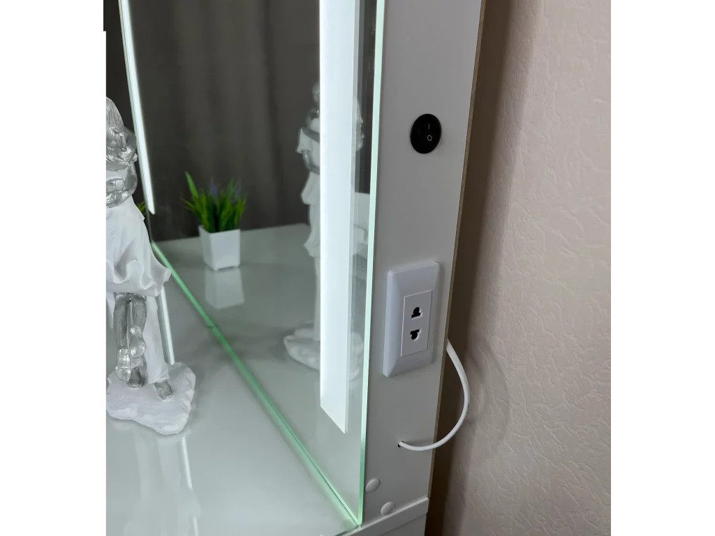 - Встроенные выключатель и розетка на торце зеркала справа.