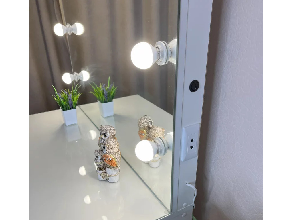 - Встроенные выключатель и розетка на торце зеркала справа.