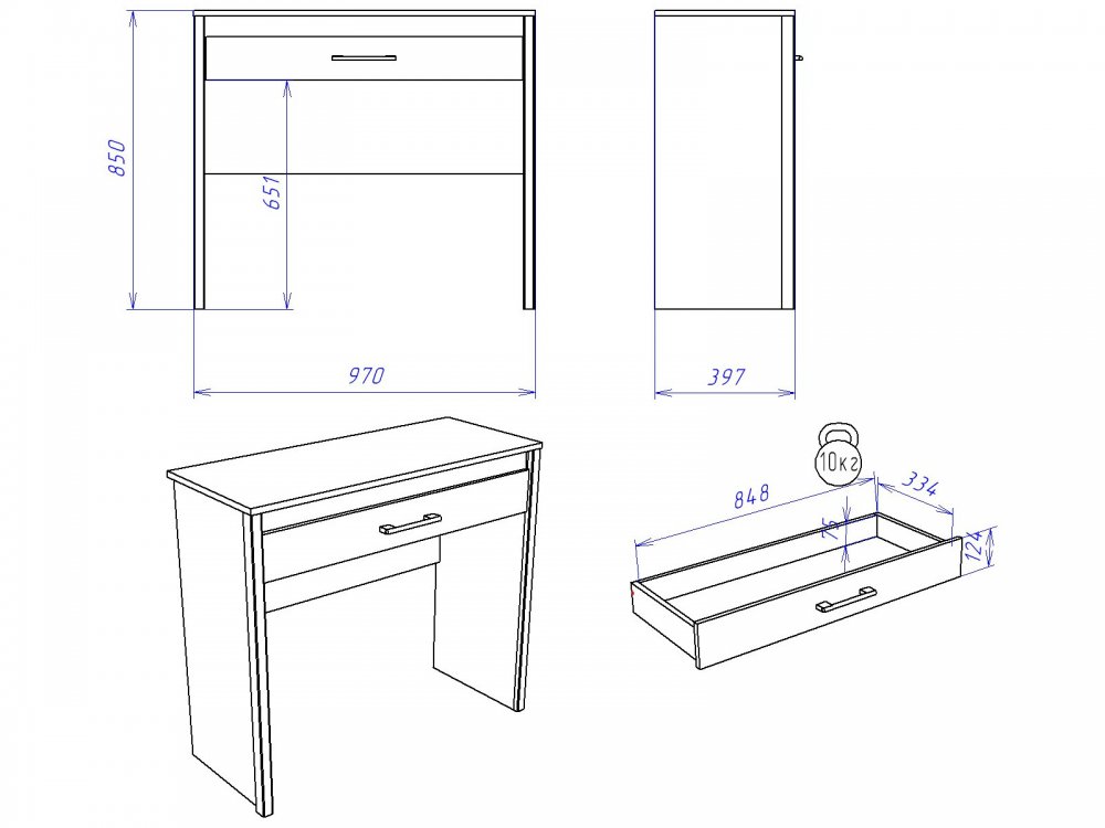 Размер ШхГхВ: 970*397*850 мм
